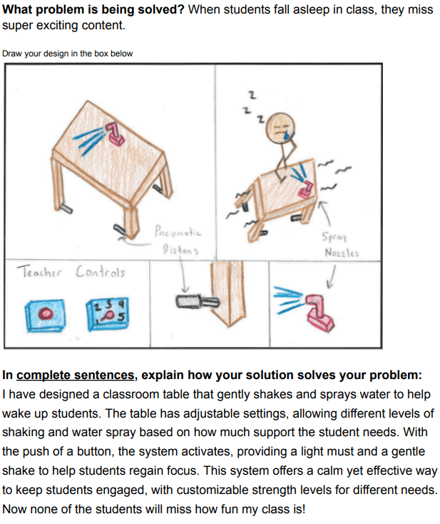 This activity engages students in real-world problem solving while helping them practice translating their ideas into clear, written communication. It focuses on the first three steps of the design process, defining the problem, brainstorming solutions, and designing a solution, providing a structured yet creative experience that develops both critical thinking and communication skills.